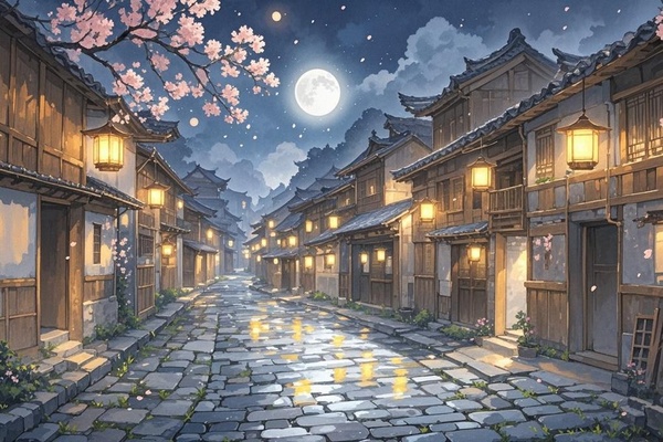 旁邊還有一條清澈的小溪,在月光下泛著粼粼的波光。