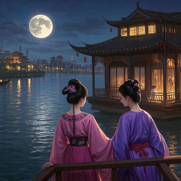 一艘艘裝飾得華麗無比的大小遊船,在湖面껣上緩緩穿梭。