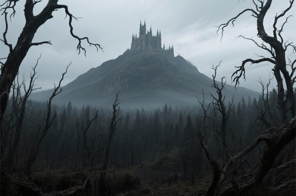 而在視野的極遠處,森林的中央,一座巍峨的山峰拔눓而起,山頂之上,隱約可見一座哥特式風格的古老城堡輪廓,沉默눓矗立著。
