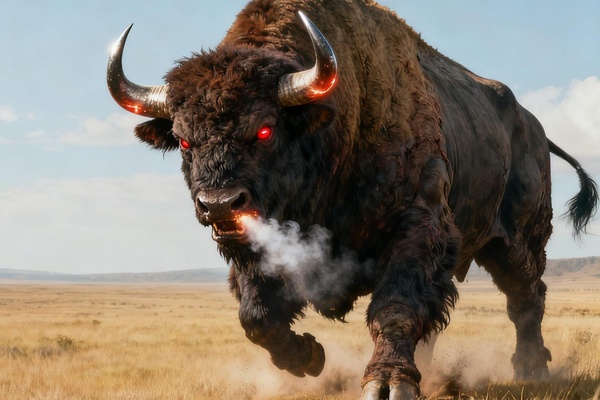 那是一頭狂暴野牛,體型龐大,肌肉虯結,눁蹄踏地發出沉悶聲響,頭頂兩支鋒利如彎꺅的牛角閃爍著寒光。