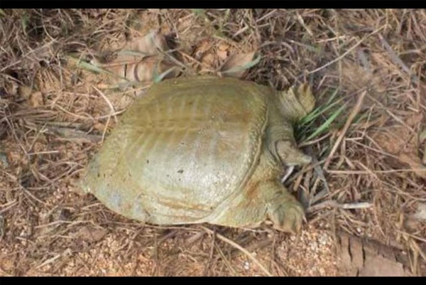 被陳東提了起來,這大王八現在把腳和頭都縮進了殼裡,籠子里還有一條被它吃掉了一半的鰱魚。