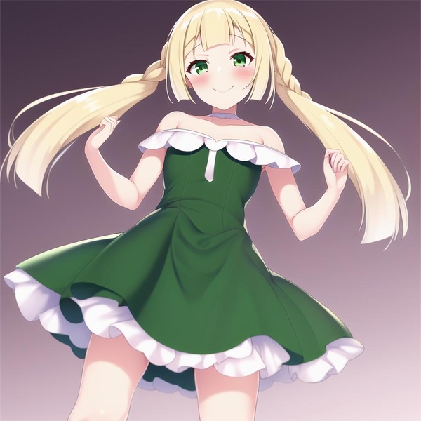 原本翠綠色的頭髮微微發藍,顯然心情不錯。