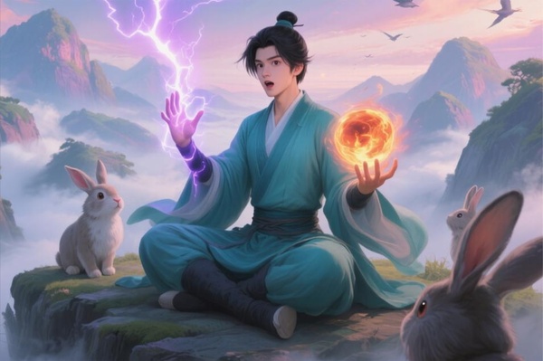 小白被靈力波動驚醒,爬到林瀟頭頂盯著紫色雷電毛髮直立:“唧唧!唧唧!”(o˘д˘) o