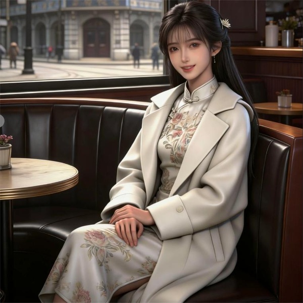 穿著一件剪裁精良的軟緞旗袍,外罩一件米白色的外套,頭髮沒有像昨晚宴會時那樣全部盤起,而是柔順地披在肩后,用一枚小巧的水晶發卡別住一側。