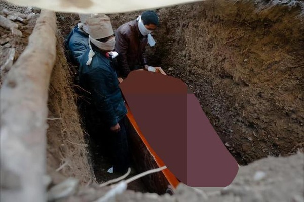 白布頭巾都安排到位了之後,就到了挖棺材的環節了。