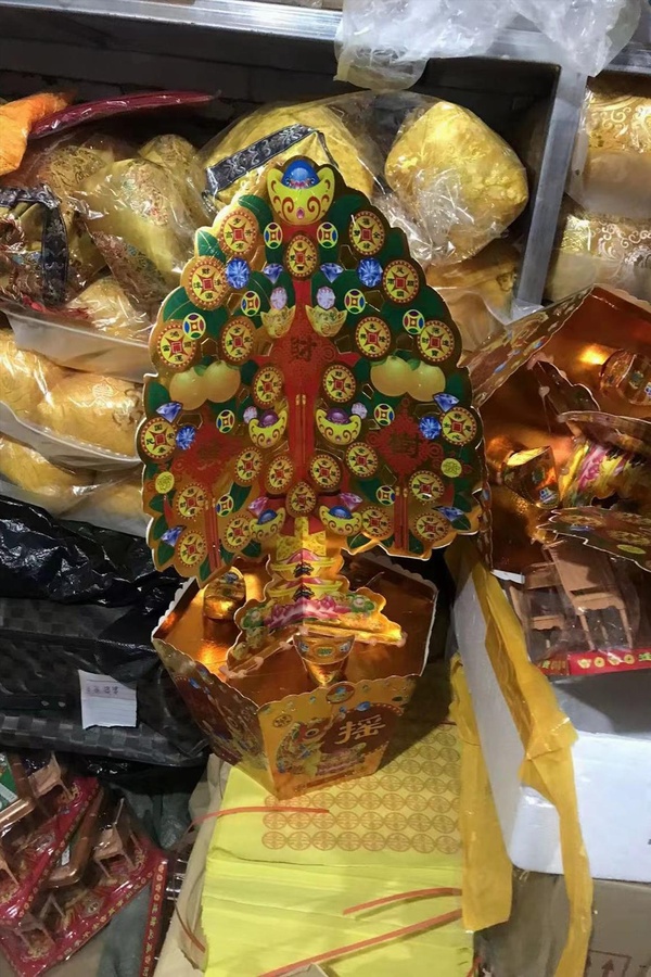 我想了想,拿了三對紙人、一沓老錢兒、百寶爭福一對、蓮花座三個、麻將桌一個、紙皮箱兩個、大元寶聚寶盆一個,因為已經有了大元寶,裡面녦以塞上幾百個元寶,所以我就沒拿金庫銀庫,剩下的,再拿個搖錢樹也就行了。