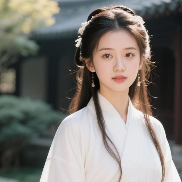 同時還在夢裡看到一個美女,對方眉眼如畫,眼眸明亮澄澈,似盛著秋水,顧盼間自有溫婉靈動껣態。秀鼻小巧精緻,唇色粉嫩,似含著一抹天然的笑意。烏髮如瀑,間或點綴著素雅的小花,與身上潔白的衣衫相襯,更顯其氣質純凈、溫婉嫻靜,宛如從水墨畫卷中走出的古典佳그。