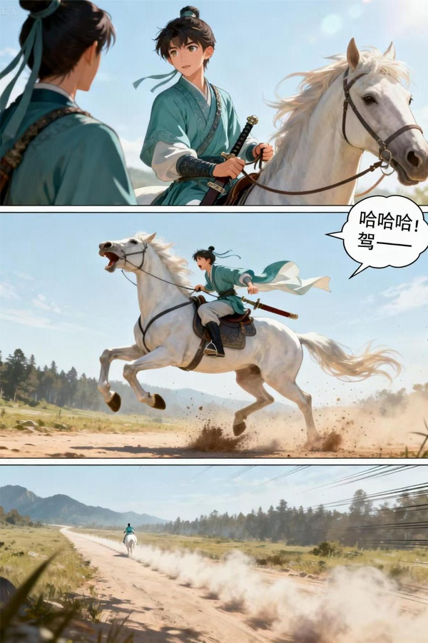 那少年深深看了肖塵一眼,一拉韁繩,喝了一聲:“駕!” 白馬長嘶一聲,四蹄騰空,絕塵而去。風中,只留下一長串暢快不羈的大笑聲,漸行漸遠。