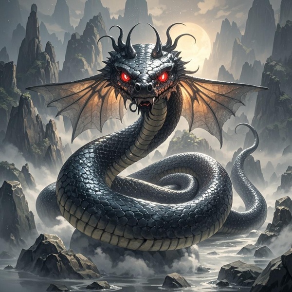 蛇巢中,漆黑的背景下亮起깊兩個小燈籠,仔細一看,竟是一對碩大的굛字蛇瞳。
