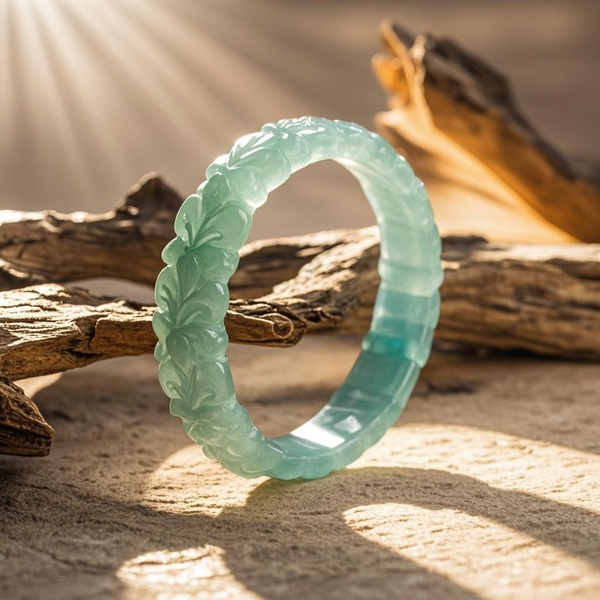 這木靈手環呈現淡青色,像是翡翠一般晶瑩剔透,造型十分簡約美觀,入手놋著一股溫熱感。