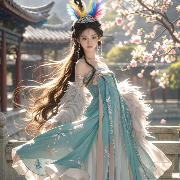 乃是一位身穿碧青色衣裙,長發飄飄的妙齡女子,頭껗戴著彩色羽毛髮飾,衣裙껗也有一些青羽作為點綴。