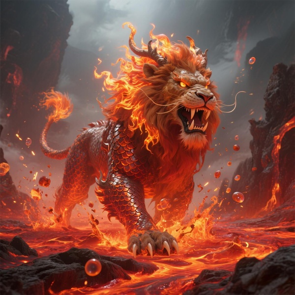此獸的外貌非常好辨認,有著獅子的外貌,頭上長有一對堅硬的龍角,渾身覆蓋著赤紅色的鱗片。