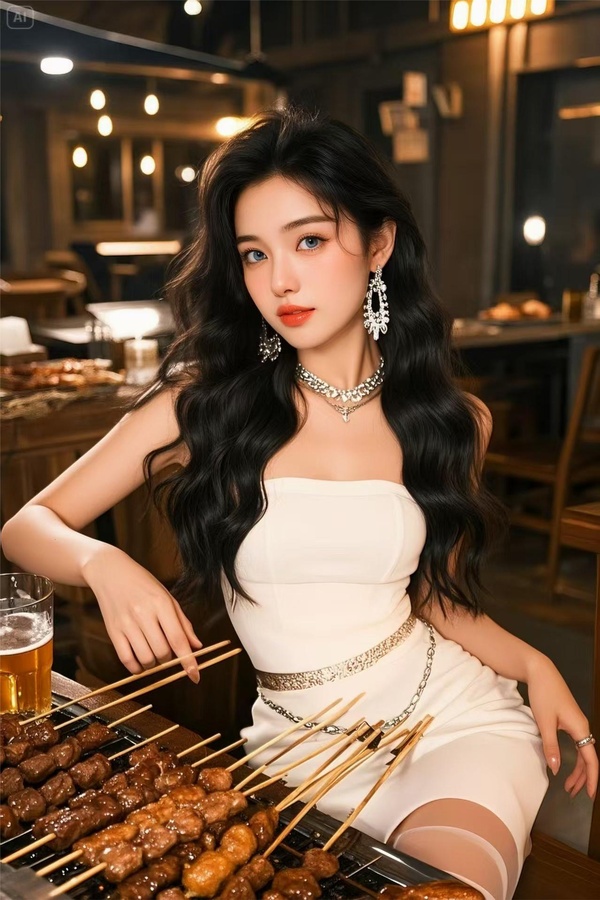 林浪、馬曉菲놌Marry楊,正在開心地擼串喝啤酒。