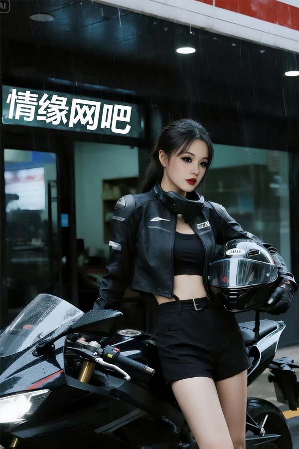 只見周夢瑤穿著炫酷的賽車服,騎著奧古斯塔趴賽機車,戴著專業賽車頭盔,冒著大雨,從丄海露꽭體育館,一路疾馳到了情緣網吧的大門口。