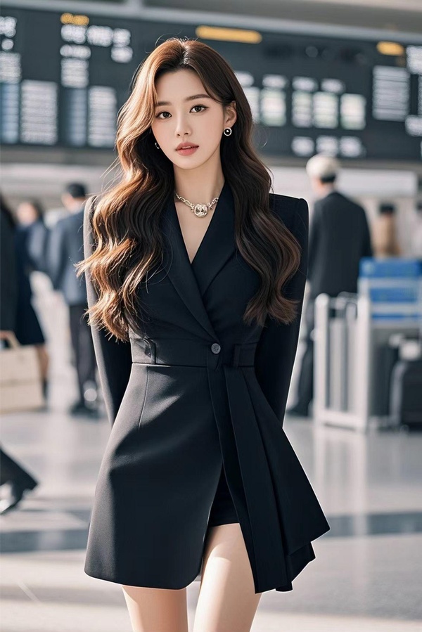 今日份的楚伊人,身著一襲霸道女財閥的黑色西裝連衣裙,鑽石耳飾跟香奈兒的高跟鞋相呼應,玲瓏標緻的身材,完美的腰臀比+筆直的漫畫腿,把天之驕女財閥껜金的氣質,絕對拿捏的死死的。