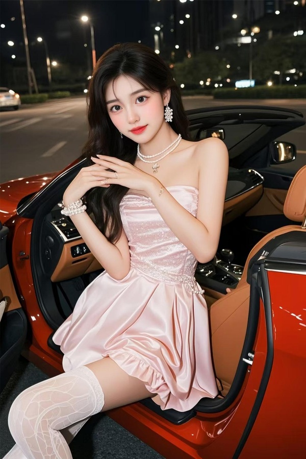 她仰起頭,晚風裹著星輝傾瀉而下,月光像層溫柔的薄紗,將她與車一同籠罩。