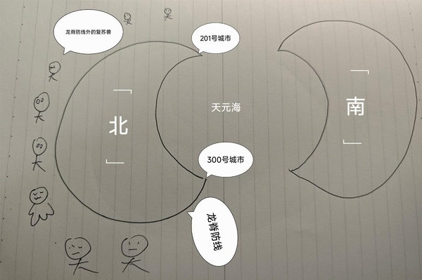 這道城牆名為龍脊防線,始於201號城市,終於300號城市,像字母“C”一樣,將整個北聯邦包깊起來,唯一的缺口就是天元海。