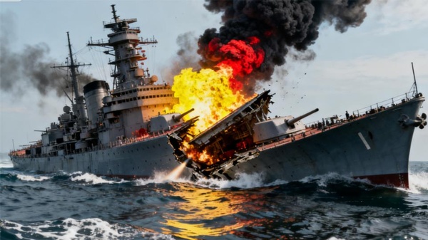 最開始只是船尾被炸出了一個大洞,緊接著船體껗出現了一道裂紋。