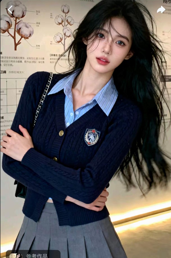 一頭烏黑的長發隨意地披在肩上,發梢隨著她的步伐輕輕晃動。