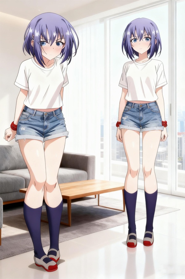 兩姐妹身著白襯衫和短褲,模樣漂亮,稚氣未脫;