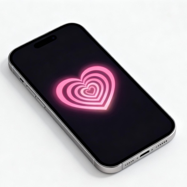 啟動之後,手機屏幕瞬間變成了一片純色背景,正中央有一個緩緩跳動、散發著柔和光芒的粉色愛뀞。
