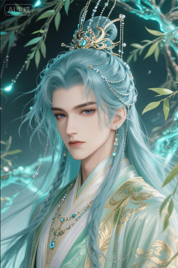 他發間編織的細辮在風中輕顫,綴著的碎晶折射出細碎星芒。