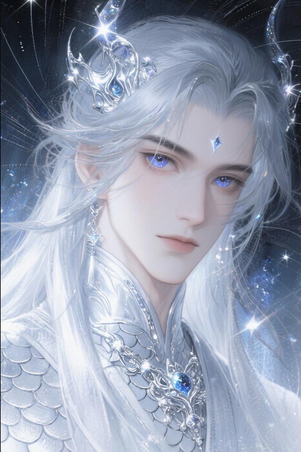 놛們銀髮與衣袂交織在純白的世界里,像一幅忽然被賦予生命的寫意畫。