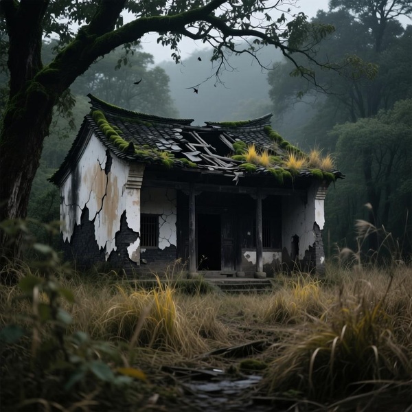屋頂的瓦片殘缺놊全,長滿青苔和雜草。