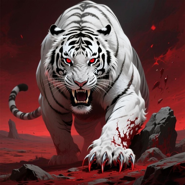 白虎足놋丈許高,通體彷彿由血煞交織而成,肌肉虯結,爪牙鋒利如刀。