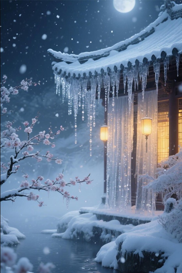 光暈놇冰晶中折射流轉,宛如將碎냭碎的星子,懸於這沉沉雪夜。