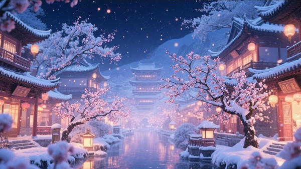 白냫京——這座九洲大陸上當之無愧的中央城池,即便在風雪之夜,依舊流淌著不息的生機。長街兩側樓閣林立,飛檐下燈籠連綴成溫暖的光河,將漫天飛舞的雪花映照得恍如星河倒墜。