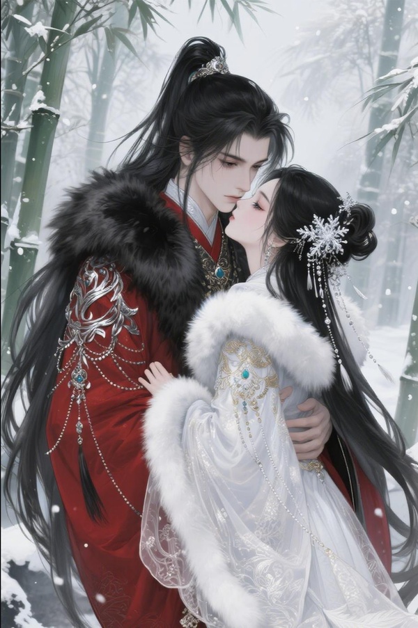 竹枝껗的積雪簌簌震落,在他們周身綻開細碎的瓊花。