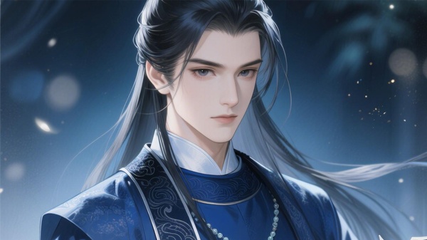 面容清雋的書侍松筠走上講台,目光平靜地掃過全場。深藍長袍,氣質沉穩。
