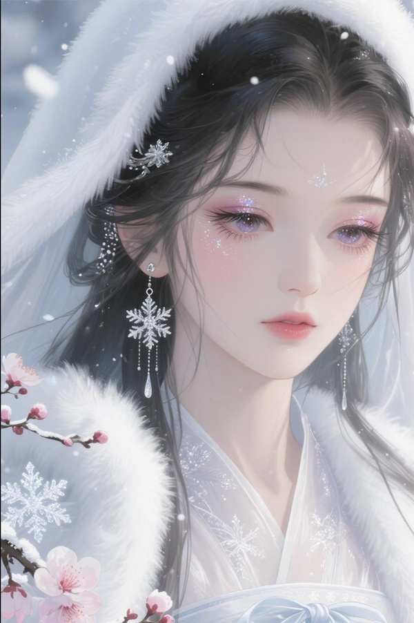 棠溪雪肌膚勝雪,在燭光下暈開細膩瑩潤的光澤,發間綴著冰雪流蘇,耳畔點綴著雪花耳墜。