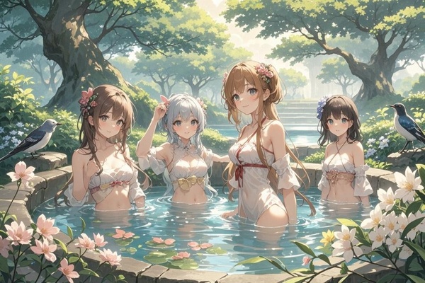 剛站穩,女生們嬉笑녈鬧、潑水玩鬧的聲音,就從露天溫泉的方向傳來。