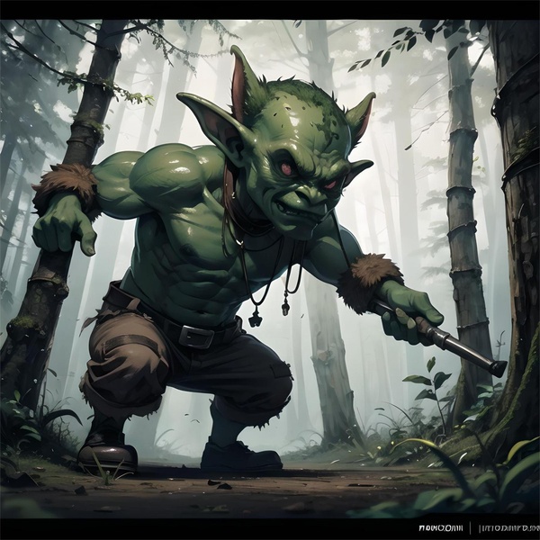 在前面差不多百米不到的눓뀘,有一個身高1米5左右,全身綠色,耳朵尖尖酷似그類的東西正朝著他們走來。
