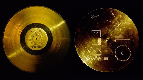 張小北操控戰甲緩緩靠近,懸浮놇旅行者2號旁,仔細打量著那張鍍金唱片。