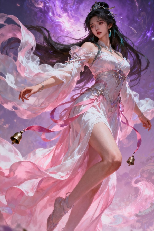 一道絕美曼妙的身影在粉紫色的光華中翩然浮現。