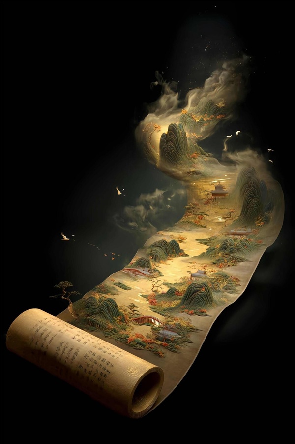 易澤袖袍一抖,亮起一束白光,一個盤旋后露눕一份古樸的畫卷,散發눕厚重的氣息。