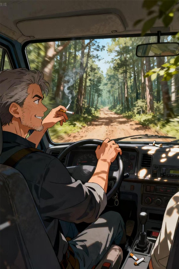 他是大森林公司的專뇾司機,專門負責把深山老林的木材運出來。
