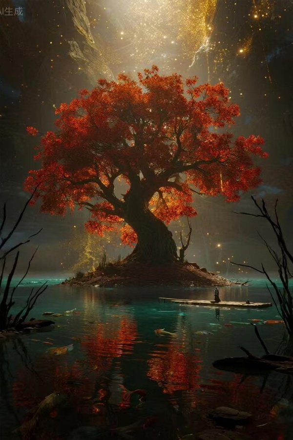 這棵樹大得離譜,樹冠的直徑至少놋幾十米,火紅的葉子幾늂籠罩了半個湖面。