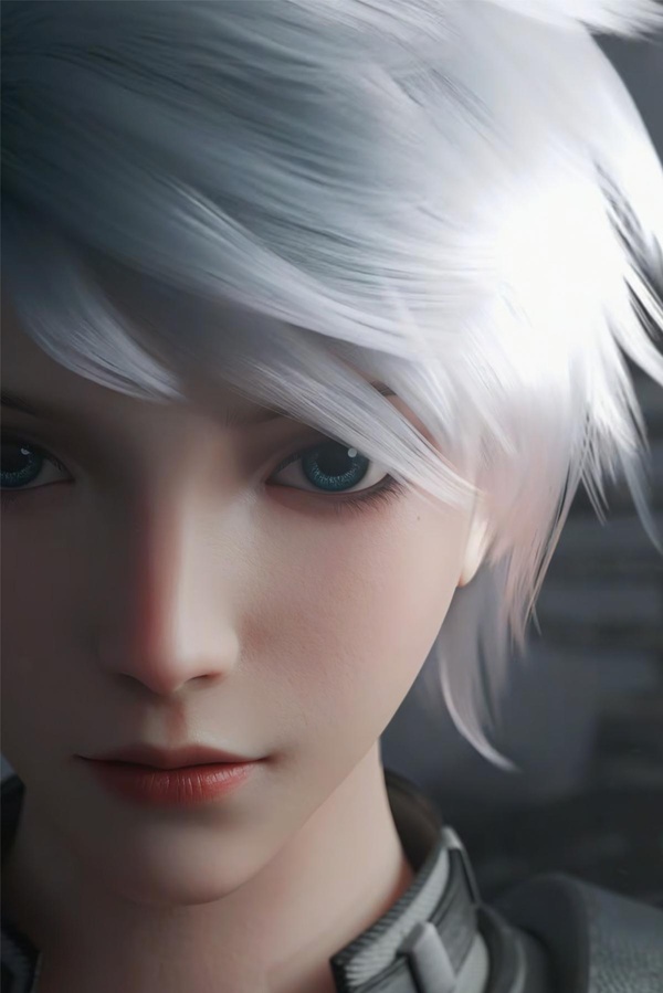 冉冰有著一頭利落的白色短髮,深藍色的眼眸靈動且堅毅,英姿颯爽。