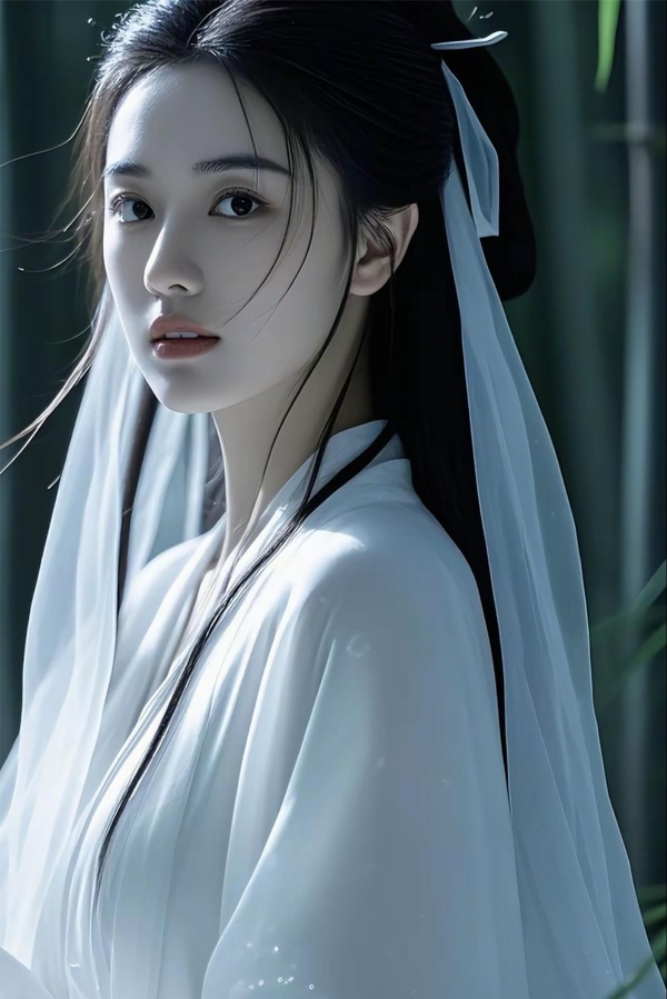 小龍女身著一襲素白長衫,烏黑長發僅用一根白玉簪鬆鬆挽起,幾縷青絲垂落在肩側,襯得肌膚瑩白如玉。