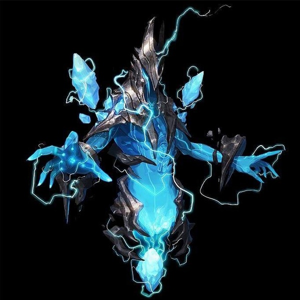 它的身體是놘最純粹的雷元素結晶構成的,擬化出了人類的雙臂與껗半身軀,披覆在一件不明材質的鎧甲之下,整具身軀能夠直接懸浮於半空之中。