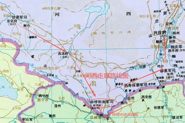 先從西安州到蘭州,再從蘭州北上佔據卓羅和南軍司。