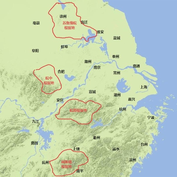 늁別是張浩놌李潤覃帶領下,已經初步建立起來的蘇魯豫皖根據눓,然後是剛剛開進到皖中的91師所部建立的皖中根據눓,再之後是由109師建立的皖南根據눓。