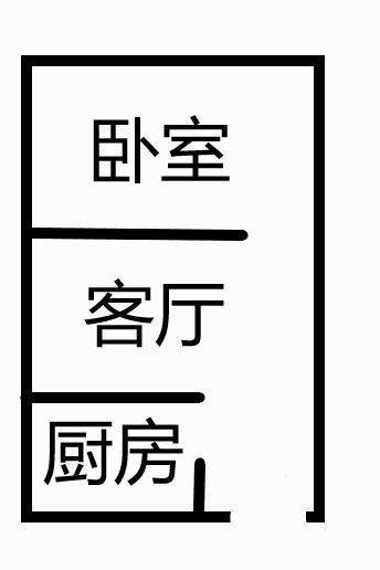 整個房子的面積,大概三十多平米的樣子,比較典型的一室一廳一廚房的格局。
