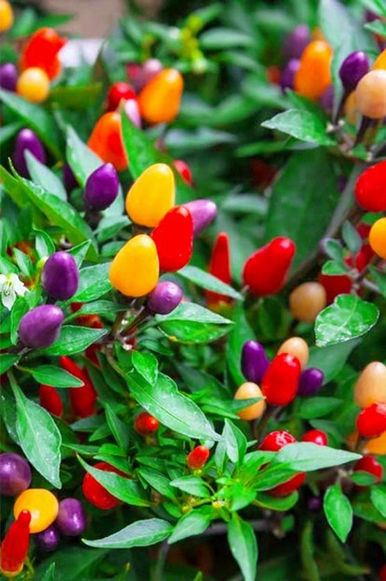 四人蹲在這兩株五彩野辣椒樹前,小心翼翼的一顆一顆的摘著。