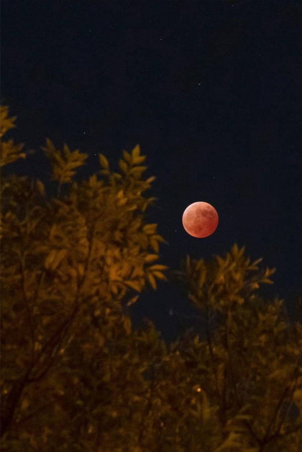 “方哥!快看,那月亮놊圓了。”瘦猴指著那輪紅色月亮喊道。